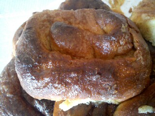 Faz-se o recheio misturando-se a manteiga derretida com o açúcar e a canela. Espalha-se toda a mistura sobre a superfície da massa e enrola-se como se fosse uma torta, começando-se pela parte mais comprida. Corta-se em fatias da espessura de 3 dedos.